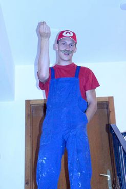 Der Geschirrspüler ist auch noch kaputt. Raphi hat den Handwerker angerufen. Plötzlich ist Super Mario mit dem Auto gekommen. Er hat die kaputten Sachen angeschaut und ist dann wieder gefahren. Später haben wir einen Brief mit dem Kostenvoranschlag bekommen. Mario will ganz viele Sterne. Mario hat uns durch den Nintendo gebracht und zu Yoshi geführt. Wir mussten Boote bauen. Das war sehr schwer, aber wir bekamen ganz viele Sterne und konnten den Geschirrspüler reparieren. Im Dunklen haben wir das Knicklichtspiel gespielt. Mein Team hat gewonnen.