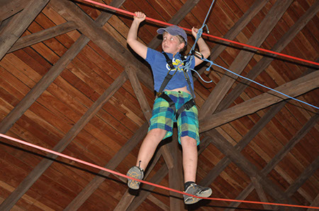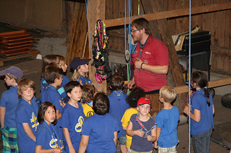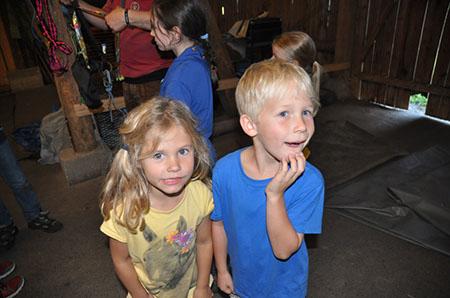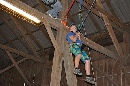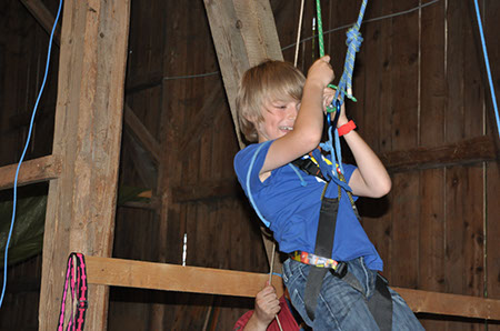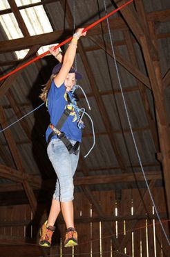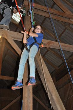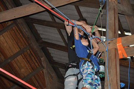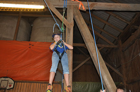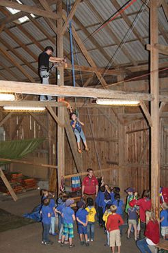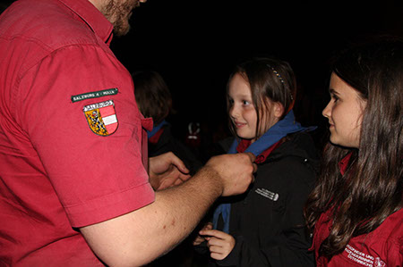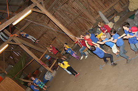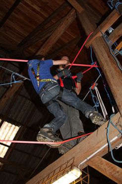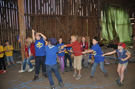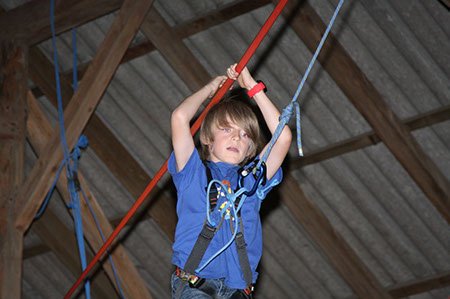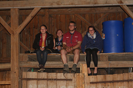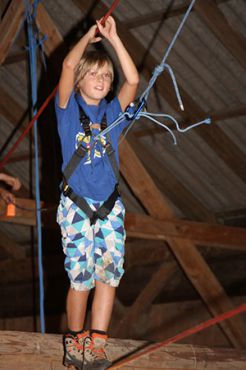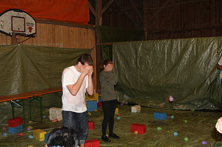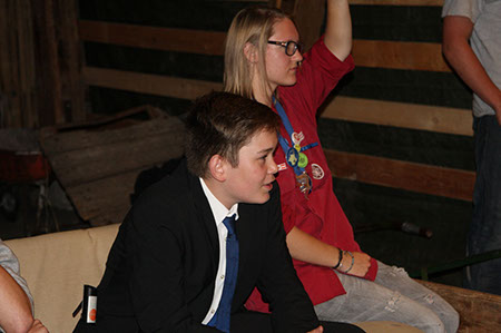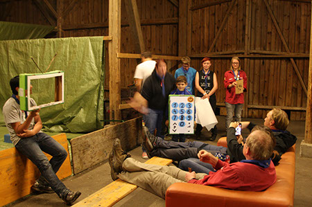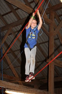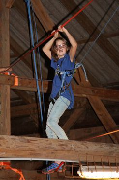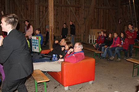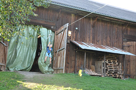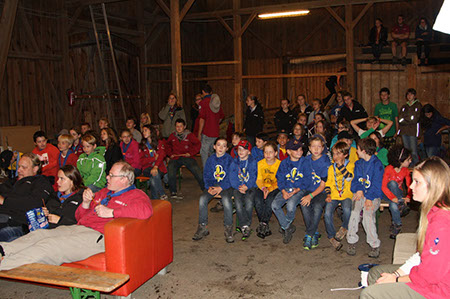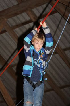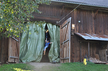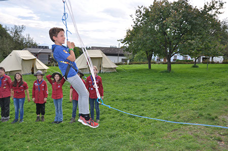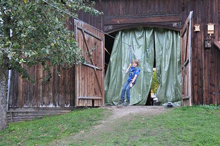 Zu den GuSp gelangten die WiWö über eine wirklich hohe Seilbrücke in der Tenne und mittels einer langen Seilrutsche durch einen Vorhang ins Ungewisse. Es war den werdenden GuSp durchaus anzusehen, dass sie all ihren Mut brauchten, aber alle wollten da unbedingt durch ...