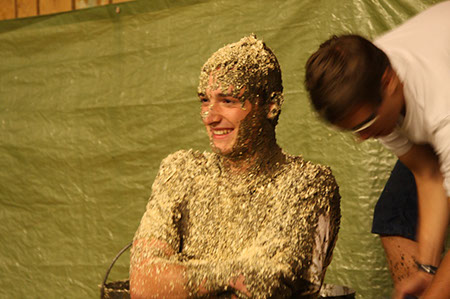 Sowieso nass wurden die RaRo-Anwärter. Nona! Die diesjährige Show war ein Fernsehabend, wobei sich die angebotenen Fernsehprogramme als ähnlich eintönig erwiesen, wie die im wirklichen Leben. Realityshow wo immer man hin zappte und immer das gleiche. Kandidaten, die furchtbar nass und schlammig wurden. Ein etwas unerwartete Szene war lediglich die, wo der arme Kandidat Gegenwehr zeigte und den verdutzten Moderator umarmte. Dessen pipifeiner Anzug musste dann in die Putzerei ...