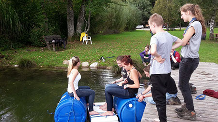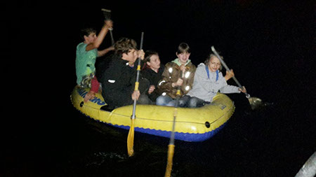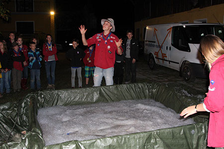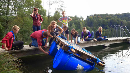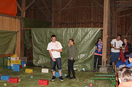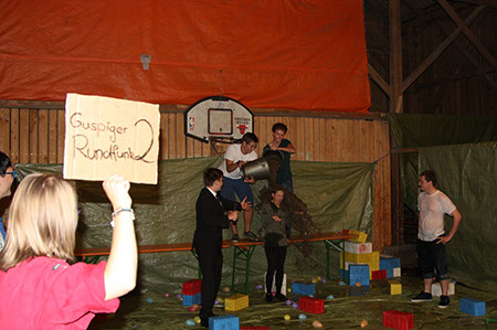 Wie immer etwas gruselig und geheimnisvoll war der Weg zu den GuSp. Wegen der Rätselhaftigkeit konnte der Autor dieser Zeilen nicht überall dabei sein, aber er hörte von Entführung, Gefesselten in einem Keller und am See und einer nächtlichen Schlauchbootfahrt. Ursprünglich war statt dem Boot ein Floß vorgesehen, aber das erwies sich bei der Generalprobe als nicht wirklich seetüchtig, was einige CaEx mit einem sehr kalten Bad bezahlten ....