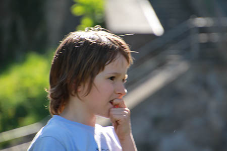 Nachdem wir den nächsten Punkt fanden, sangen wir dort noch einmal das neue Lied und sahen auf dem Rückweg wieder das traurige Monster. Es hatte eine Hälfte eines Memory-Spiels und wir hatten die andere Hälfte! So spielten wir mit dem Monster noch Memory und bekamen daraufhin Hinweise, wo der Schatz genau liegt. Am Spielplatz!!!