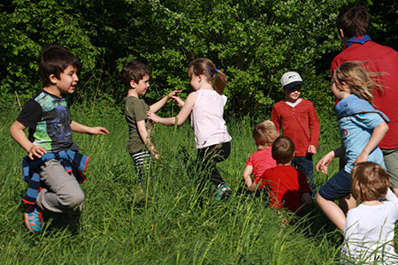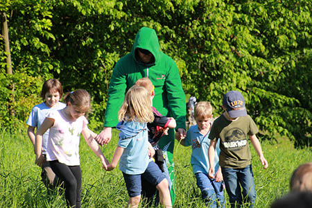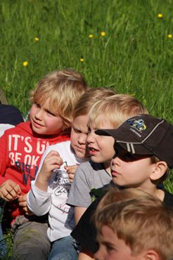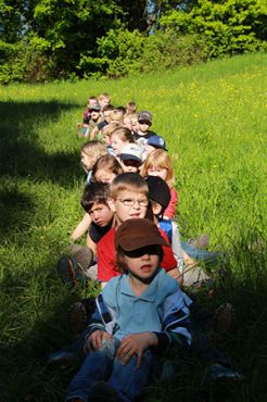 Die Maxglaner Biber hatten einen Teil einer Schatzkarte zum „ Biberschatz“ und fragten uns ob, wir mit ihnen gemeinsam den Schatz suchen wollten. Nach der Begrüßung und einem gemeinsamen Spiel starteten wir die Suche nach dem Schatz. Der erste Hinweis sollte schon am Spielplatz sein!! Wir fanden einen Liedtext, den wir gleich lernten und schauten zum nächsten Punkt der auf der Schatzkarte markiert war. Dort mussten die Biber den „Gordischen Knoten“ lösen. Das schafften sie natürlich in Rekordzeit, und bekamen als Belohnung Gummibärchen. Zum nächsten Punkt mussten wir ein wenig länger gehen und fanden auch keine weiteren Hinweise. Doch dann fanden die Biber das traurige Monster „Felix“. Das Monster war alleine und niemand spielte mit ihm. Die Biber entschieden gleich dem Monster eine Freude zu machen und spielten „Versteinern“ mit dem Monster. Schließlich bekamen die Biber aus Dankbarkeit den 2. Teil der Schatzkarte und wir konnten unsere Suche fortsetzen.