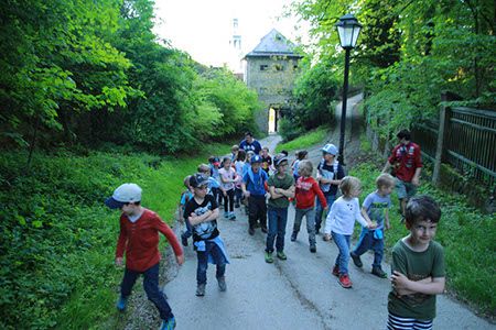 Am 6.5. trafen wir uns wie gewohnt in unserem Biberbau, doch bei dem schönen Wetter blieben wir nicht lange in unserem Bau und gingen deshalb gleich zum Kletterspielplatz am Mönchsberg!
