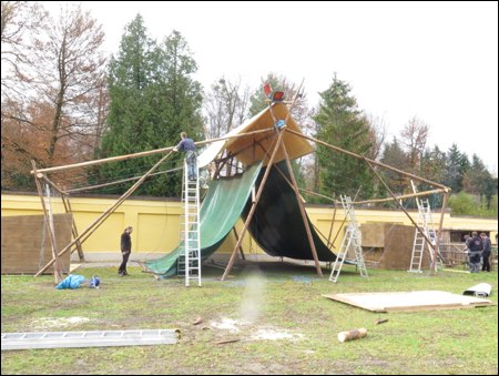 Bei perfektem Wetter am Freitag und annehmbarem Wetter am Samstag ging uns diesmal der Aufbau eigentlich sehr gut von der Hand - die mehrjährige Erfahrung (mittlerweile sind wir das 12. Mal am Hellbrunner Adventzauber) macht sich gleichfalls bezahlt. Wir hatten diesmal "sogar Spaß" dabei und waren trotzdem schon am Samstagnachmittag mit allem fertig.