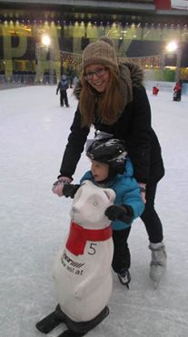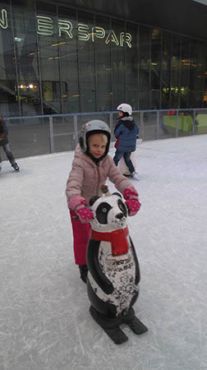 Nachdem jeder seine Schuhe angezogen hatte und wir einige Pinguine und Eisbären zum Anhalten ausgeliehen haben, gingen wir endlich auf das Eis.