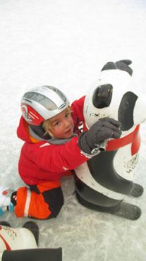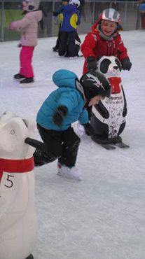Doch nach ein paar Runden mit oder ohne Pinguin oder Eisbär oder etwas anderem, an dem man sich festhalten konnte, wurden die Stürze weniger und die Biber fuhren immer schneller und sicherer am Eis herum.