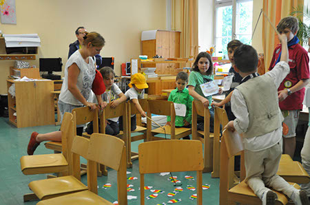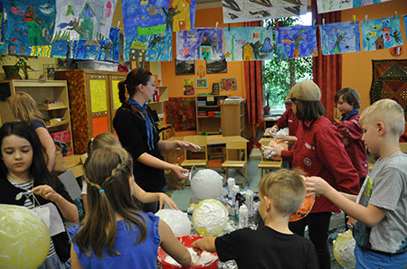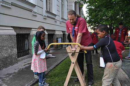 Wie jedes Jahr dürfen wir auch heuer wieder das Schulfest in der Müllner Volksschule unterstützen. Die Vorbereitungen sind abgeschlossen und wir freuen uns schon auf die Kinder. Mit 5 Stationen - Malstraße, Luftballon rasieren, Feuer machen, Sägen und Magnetangeln - sind wir dabei. Leider spielt das Wetter nicht wirklich mit - es nieselt, was aber der guten Laune keinen Abbruch tut. Nach der etwas nasskalten Begrüßung beginnt der Spaß und die einzelnen Station werden gestürmt. Kerschi, Laura, Anna-Lena, Nadja, Maxi und Evi betreuen die Stationen mit Hilfe vieler Pfadfinderkinder die sich bei den Stationen abwechseln und selbstverständlich auch selbst mitmachen als - "schaut's her, so geht's". Es macht sichtlich großen Spaß und am Abend sind alle Spielpässe ausgefüllt. Das Getöse kräftigen Trommelns der anwesenden Pfadis im und ums Schulhaus kündigt das Ende des Festes an. In Windeseile räumen wir auf, bedanken uns gegenseitig für's Dabeisein und enteilen ins Wochenende.
