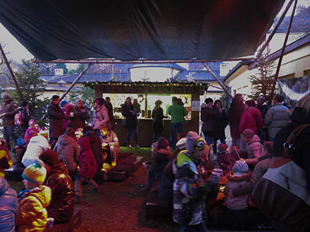 Wir sind heuer bereits zum 12. Mal am Hellbrunner Adventzauber mit einem großen Stand vertreten, der nicht nur Kinderaugen leuchten lässt. Bei uns können Sie wieder Knacker grillen oder Marsmellows braten am Lagerfeuer. Ab dem 1. Advent wird auch wieder jeweils am Samstag und am Sonntag am Nachmittag Evi - unsere Märchenerzählerin - für tolle und spannende Geschichten am Lagerfeuer sorgen (wenn ihre Verkühlung wieder weg ist ;-)). Zusätzlich gibt es natürlich den berühmten Pfadfinder-Tee (keine Angst, es ist ein "normaler", nicht ganz so süßer Früchtetee und besteht keinesfalls aus Pfadfindern), Kinderpunsch und für die Erwachsenen: Glühwein und Orangenpunsch.