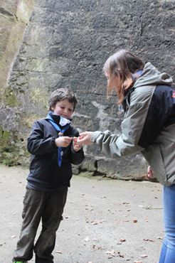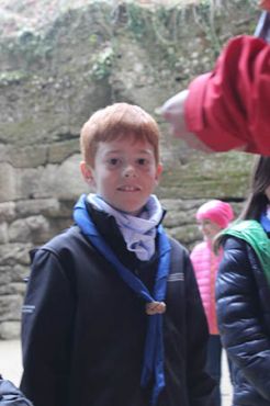 Nachdem erneut das Lied gesungen wurde, stellten sich alle im Kreis um die WiWö-Kerze auf. Jeder bekam nun die Gelegenheit seinen Wunsch für die drei Kinder rund um unsere Kerze zu legen. Nach der Versprechensfeier der drei WiWös bekamen noch Emmanuel und Leopold jeweils ein Spezialabzeichen verliehen. Nach einem dreifachen „Allzeit Bereit!“ gab es für alle Kindersekt und Schokobananen.