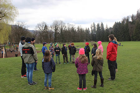 Der Rückweg zum Spielplatz und der anschließende Schlusskreis beendeten die Heimstunde.