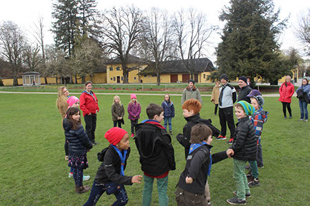 Am Dienstag den 29. März 2016 trafen sich die WiWös nach der Osterpause am Spielplatz in Hellbrunn, da dies eine besondere Heimstunde für einige der Pfadfinder werden sollte. Auch einige Eltern begleiteten uns.