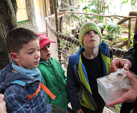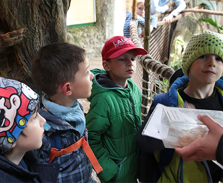 Wir hatten eine ganz nette Zoopädagogin, die uns alles erklärte. So durften wir eine Menge erleben. Wir übten uns im Blasrohr schießen und waren sofort sehr gut darin, wir durften die Wellensittiche füttern und die ganz mutigen unter uns Schlangen streicheln.