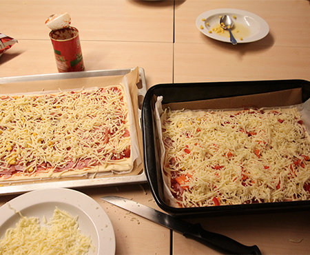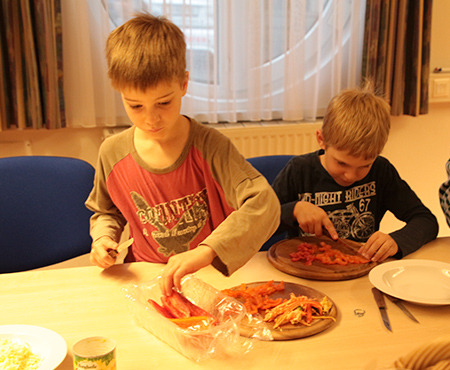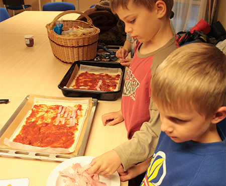 Im LV angekommen, begannen wir unsere eigene Pizza zu belegen. Die Biber halfen tüchtig bei den Vorbereitungen und durften ihr Stück jeweils selbst belegen. Die Pizza schmeckte superlecker :-)
