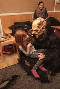 Ein paar Biber erschreckten sich sehr, doch die Furcht war schnell verschwunden und sie wollten gar nicht mehr von den Krampussen weg.