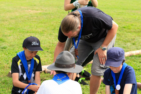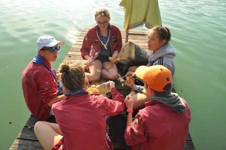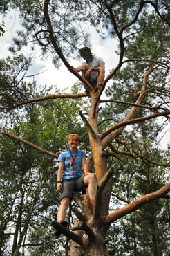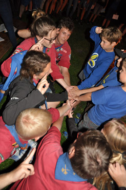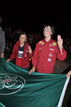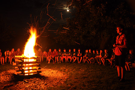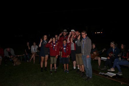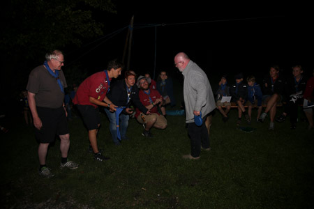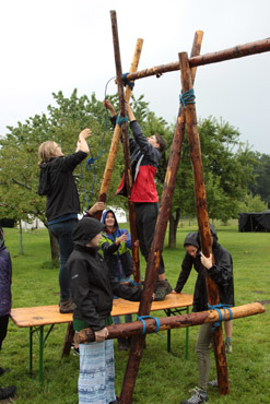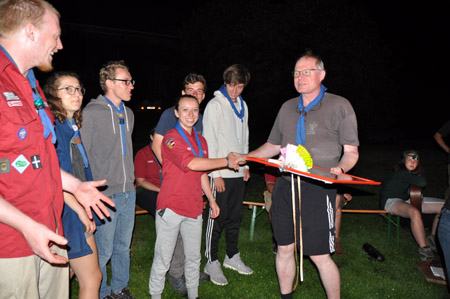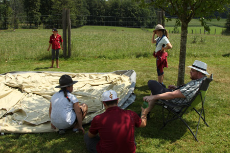 Und dann kam der Sturm. Ich zitiere, ich weiß nicht wen: “Das war der schnellste Lagerabbau der Gruppengeschichte, aber mit etwas Rückenwind”. Binnen drei bis fünf Minuten lagen alle Zelte, die großen in- und durcheinander, die kleinen dann von uns beabsichtigt, um Schlimmeres zu verhindern. Der Schaden ist leider groß, wenn auch etwas kleiner, als ursprünglich befürchtet, aber es gab keinen Personenschaden - es waren zufällig keine Kinder am Lagerplatz - und die Tage danach stimmten uns froh. Alle halfen zusammen und zogen an einem Strang, die nicht enden wollenden Aufräumungsarbeiten zu bewältigen und gleichzeitig noch ein schönes Restlager für alle zu zaubern, inklusive der geplanten Überstellungen zu den nächsten Stufen. So ist mir für die nächsten 60 Jahre nicht bang.