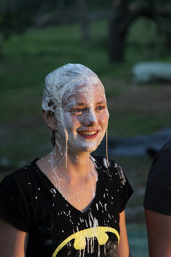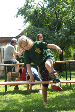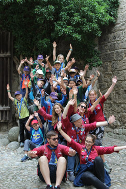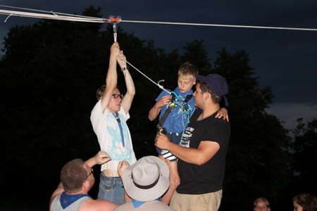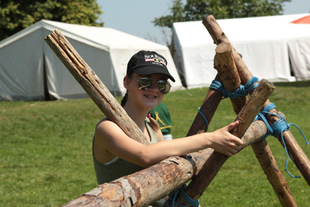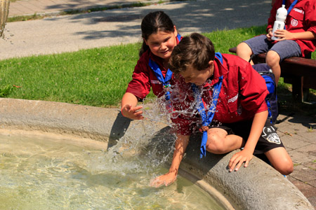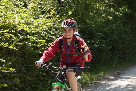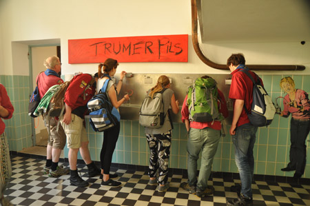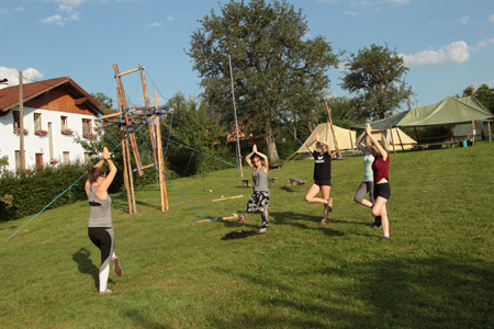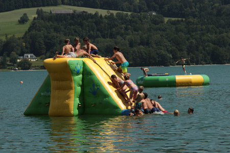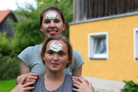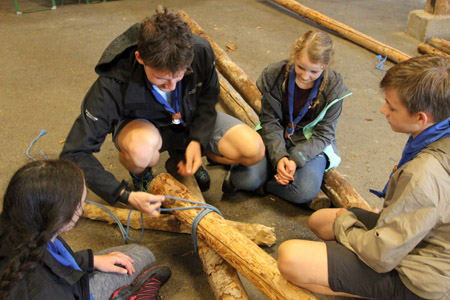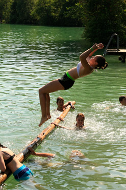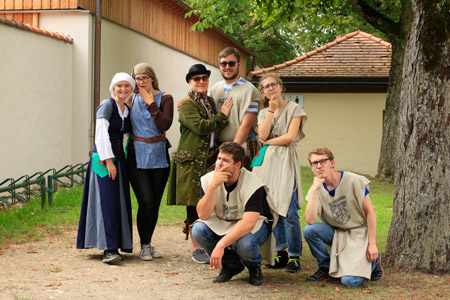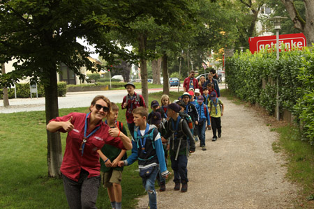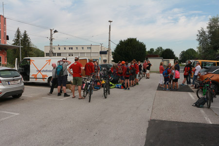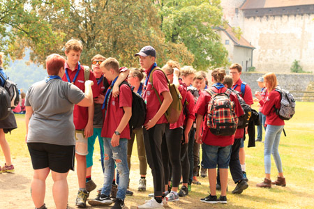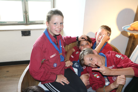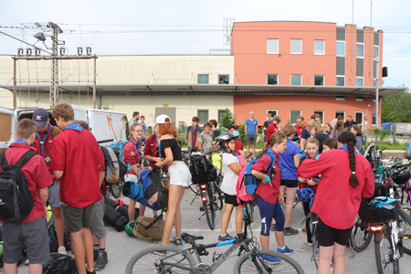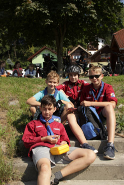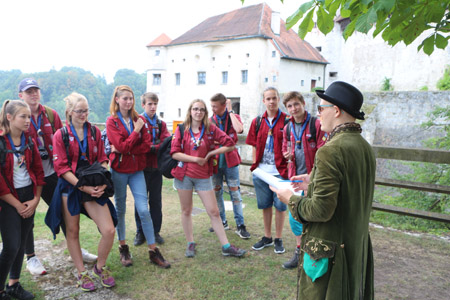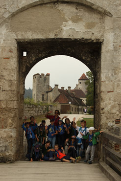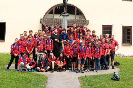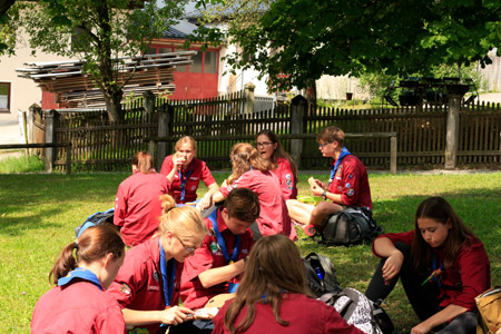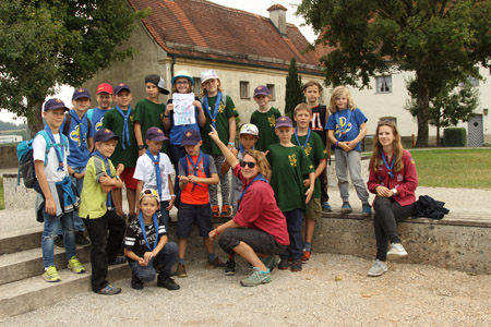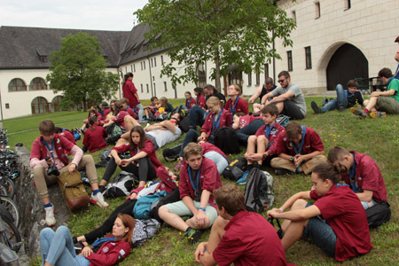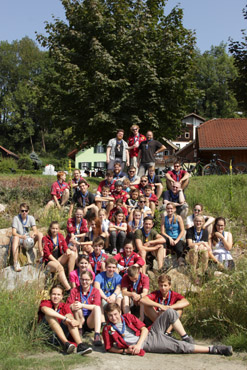 Auch weitere Programmpunkte nahmen Bezug auf das Jubiläum. Das Lipplgut liegt unweit unseres ersten Lagerplatzes am Holzöstersee, wir kehrten teilweise zurück zu den Wurzeln, etwa durch die Wahl von Fahrrädern als Verkehrsmittel, durch etwas aufwändigere Lagerbauten, durch den Besuch des Stammklosters unserer Hausherren in Michaelbeuern und mehr. Es gab auch weltweite Verbundenheit, immerhin liegt Burghausen einige Meter jenseits der Salzach und damit im Ausland. Und übrigens hat die Braut von Landshut hier den größten Teil ihres Lebens gewohnt.