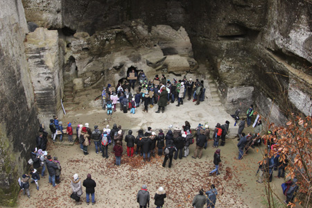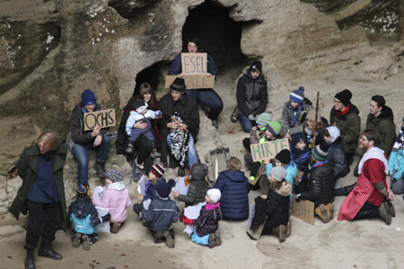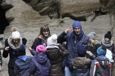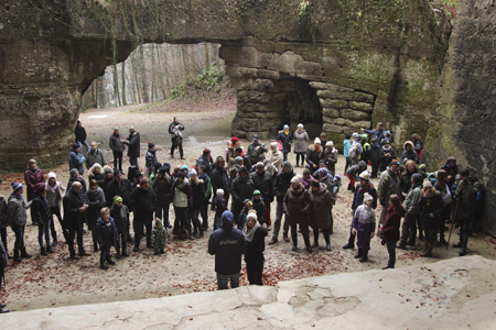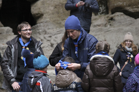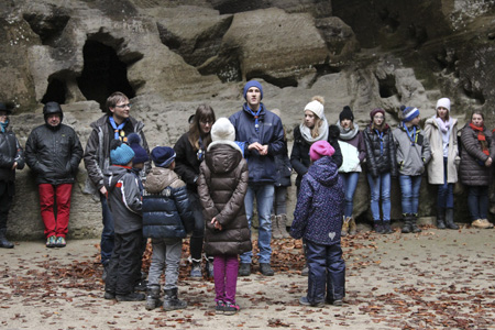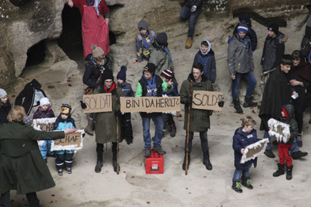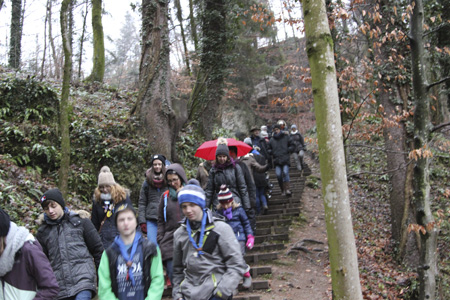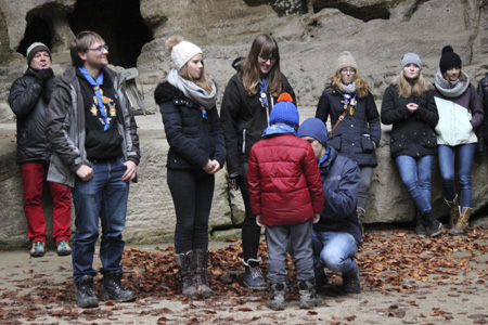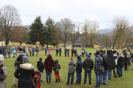 Es begann alles am frühen Nachmittag beim Sound-of-Music Pavillon in Hellbrunn. Eine große und bunt gemischte Menschenmenge hatte sich bereits versammelt und wartete nur noch auf das Zeichen, die alljährliche Adventwanderung zu begehen. Dieses Jahr war als Veranstaltungsort der Hellbrunner Park ausgewählt worden, weil sich die Gruppe etwas einfallen hat lassen, um die Wanderung künstlerisch etwas auszumalen und dafür war das Hellbrunner Steintheater unverzichtbar, doch dazu später mehr. Nachdem das Signal zum losgehen endlich gegeben wurde, ging man frohen Mutes (Ein Wettergott meinte es gut mit uns und ließ für die Dauer der Wanderung nicht regnen) und gemächlichen Schrittes Richtung Steintheater. Sämtliche Teilnehmer unterhielten sich angeregt auf dem Weg und es wurden sogar immer wieder kleine Pausen gemacht, um ein paar Weihnachtslieder zu singen. Beim Steintheater wurde seitens der Leiter auch gleich das Geheimnis gelüftet, warum es unbedingt das Steintheater sein musste: es war ein Krippenspiel vorbereitet worden. Trotz einiger Startschwierigkeiten (der Erzähler wollte unbedingt die Odyssee vortragen) ging das Stück gleich in die Vollen. Es wurde als minimalistisches Improvisationstheater aufgeführt und jeder Mitwirkende (die ganze Gruppe war involviert) bemühte sich, die ihm zugeteilte Rolle auszufüllen, sei es als Schneesturm, Schafherde, Engel Aloisius oder japanische Touristengruppe. Das Stück war ein voller Erfolg und unsere Schauspieler verabschiedeten sich unter tosendem Beifall und Begeisterungsstürmen. Nach dem Krippenspiel gab es bei den Wichteln und Wölflingen noch einige Verleihungen. Gracia, Konstanze, Lukas, Simon und Philip wurden in die WiWö-Meute aufgenommen und bekamen ihr Halstuch und ihren Dschungelnamen verliehen. Diese wurden mit dem nötigen Zeremoniell und Pomp verliehen und unter den begeisterten Zurufen der ganzen Gruppe trugen unsere frischgebackenen Pfadis ihre nagelneuen Halstücher zur Schau. Einem unserer Wölflinge (Maxim) wurde auch noch der 1. Stern verliehen.