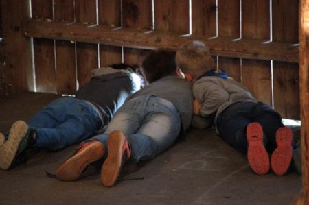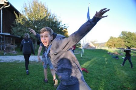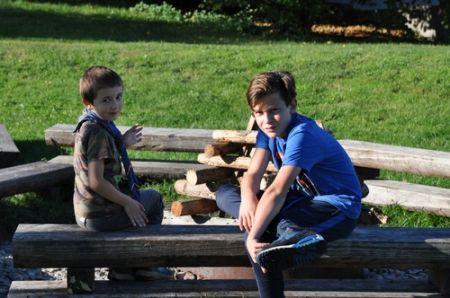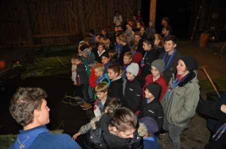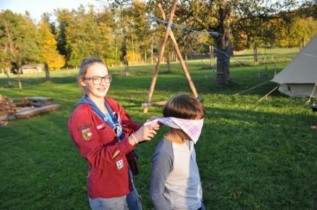 Während einige Leiter schon tags zuvor auf das Lipplgut gefahren waren um die vorbereitungsintensiveren Überstellungen aufzubauen, kam der Bus um 10 Uhr an. Daraufhin ging es sofort zum Fahnengruß und dem Lagereinstieg. Nachdem Kerschi mit seinen Vortänzern eine seiner Guten-Morgen Geschichten zum Besten gegeben hatte, waren alle aufgewärmt und bereit die Schlafplätze zu beziehen. Die 21 WiWö bereiteten ihre Zimmer im Haus vor, nur die 8 WiWö die bald überstellt werden würden bezogen kein Zimmer. Die Aufregung war beinahe greifbar, da sie endlich zu den Guides & Späher kommen würden.