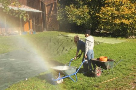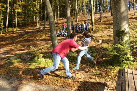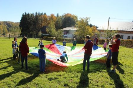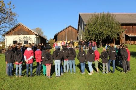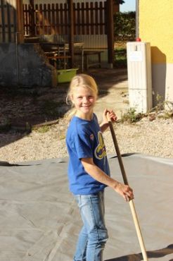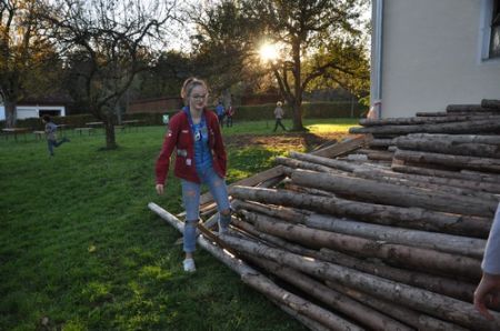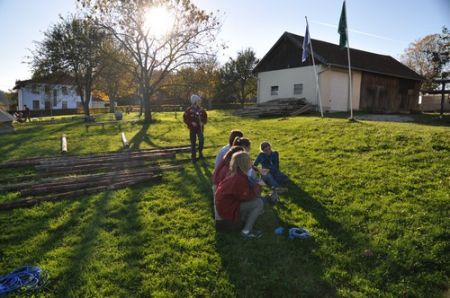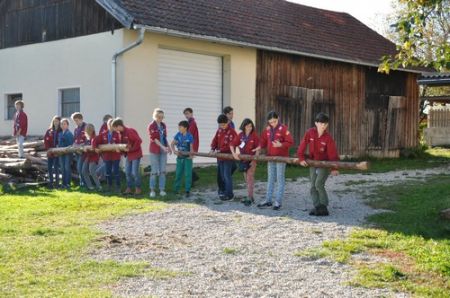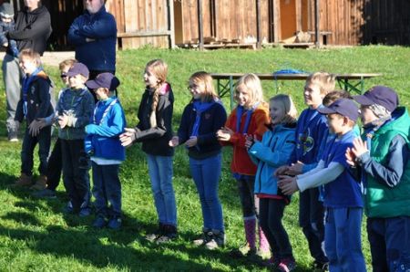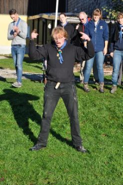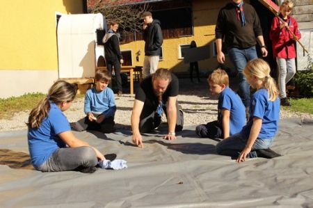 Der nächste Tag begann mit einem Frühstück im Freien. Das frische Brot und die kühle Temperatur genügte das selbst die müdesten Gemüter bald wieder wach waren. Im Anschluss ging es zum Morgengruß und nach dem üblichen „Morgensport“ zu einer weiteren Geschichte von Kerschi begannen die einzelnen Stufen schon mit dem Putzen. Die WiWö kümmerten sich um das Haus, die GuSp bauten die Zelte ab, die CaEx kümmerten sich um die Tenne und die Sanitäranlagen und die RaRo machten die Tenne wieder ansehnlich. Nach dem gemeinsamen Mittagessen kamen auch schon die ersten Eltern zum Elternnachmittag an, während Astrid und einige andere Leiter mit den Kindern einen Spaziergang zum See unternahm, wo sie Kugelbahnen bauten. Danach gab es noch einen gigantischen Schlusskreis mit allen Anwesenden.