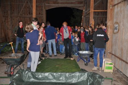 Auch die RaRo waren ausgelastet. Während die WiWö – GuSp Überstellung in der Tenne noch vorbereitet wurde arbeiteten auch sie unermüdlich an ihrem Projekt, das sie ebenfalls am Vortag schon begonnen hatten. Um neugierige Augen fernzuhalten, wurde die Tenne für die Kinder und vor allem die zu Überstellenden gesperrt.
