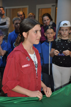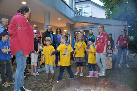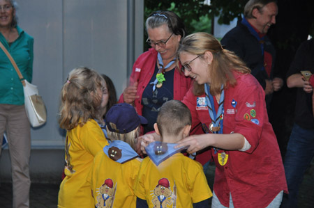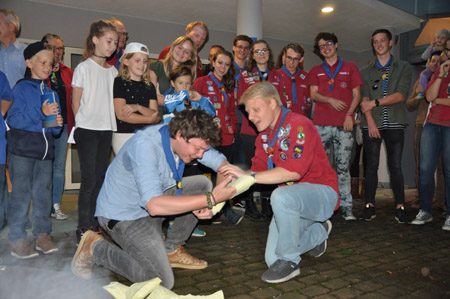 Wir machten - vor allem um den Verleihungen einen netten Rahmen zu geben - und weil uns das Wetter wohlgesonnener war als angesagt, ein Lagerfeuer in der Feuerschale und schauten ein bisschen zurück in das vergangene Pfadfinderjahr. Danach bekamen alle fleißigen, Biber, WiWö und GuSp für ihre Anstrengungen bei den Erprobungen und Spezialabzeichen, diese auch verliehen.