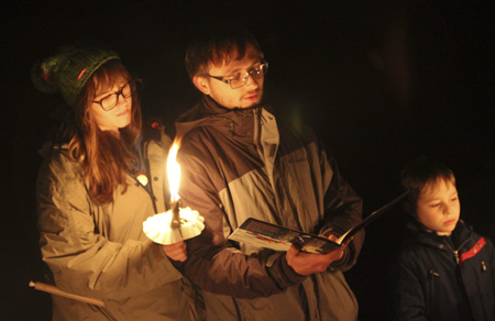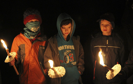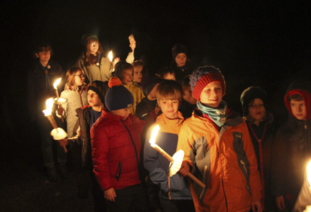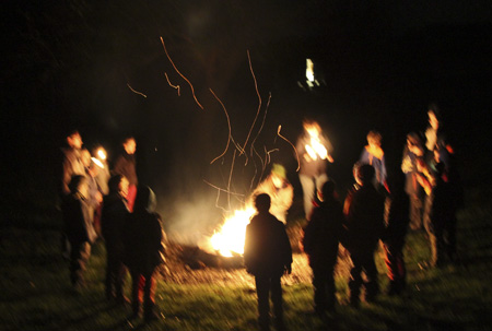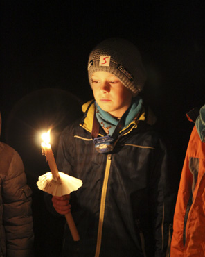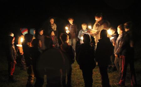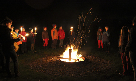 Nach dem Abendessen ging es noch einmal nach draußen. Wir versammelten uns um ein großes Lagerfeuer, genossen die Wärme, entzündeten unsere Fackeln und machten eine Fackelwanderung zum See. Zum Abschluss des Tages gab es noch einen gemütlichen Spieleabend.