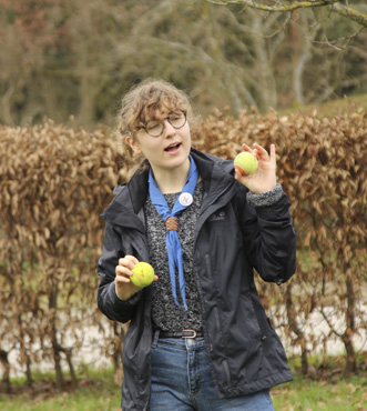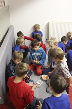 Schneller und ordentlicher als erwartet waren die Zimmer bezogen und es wurde Zeit für Namens – und Teamspiele. Doch es waren nicht die schwierigen Aufgaben bei den Teamspielen die größte Herausforderung, sondern das lösen dieser ohne zu sprechen. Nachdem alle Aufgaben gelöst waren und uns allen schon etwas kalt war, freuten wir uns alle auf einen warmen Tee im Haus. Bis zum Mittagessen wurden fleißig Erprobungen gemacht und als sich der Geruch der Würstelsuppe langsam im Haus ausgebreitet hat, wurden eifrig die Hände gewaschen und Tische gedeckt.
