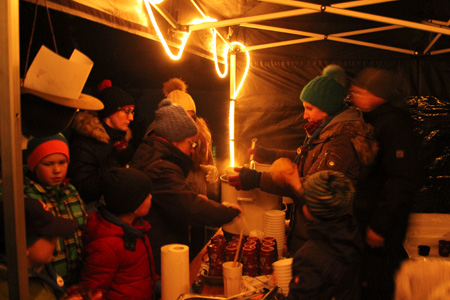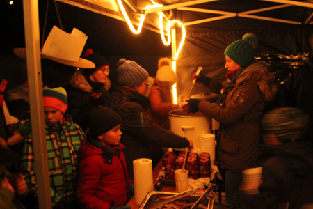 Am Ende der Adventwanderung gab es zum Aufwärmen natürlich noch die traditionelle Jause mit Würstel und als Abwechslung eine leckere Kartoffelsuppe, warme Getränke für jedermann, ein Lagerfeuer und einen schön verzierten Christbaum im Garten der Familie Gassner.