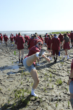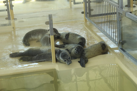 Zu erleben gab es viel. Wir wateten in Socken im Watt - mit Führerin, weil wir sonst im Sumpf versunken und von der Flut überrascht worden wären und ganz sicher nicht die vielen Kleinlebewesen gefunden hätten, die sie uns erstocherte. Nach Entsorgung der Socken sahen wir niedlichen Heulern bei der Fütterung zu.