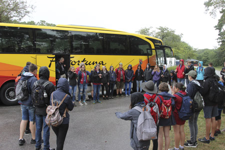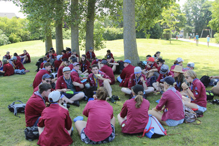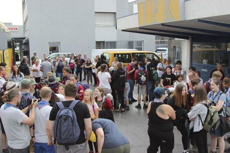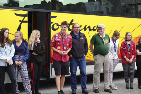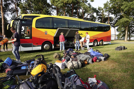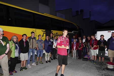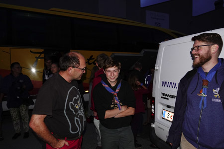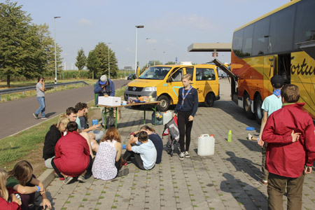 Den letzten Tag verbrachten wir in der Autostadt Wolfsburg. Die Dame an der Kassa, selbst Pfadfinderin, rettete uns vor der übereifrigen Security, die in unseren Rucksäcken Taschenmesser vermutete. Der herbeigerufene Manager erklärte uns alles und verkaufte uns nebenbei fast ein Auto. Ab Mitternacht wollten wir in einer Horucknachtfahrt heim. Denkste! Wir schoben nach wenigen Kilometern noch einen fünften Lagerplatz ein, eine „idyllische“ deutsche Autobahnraststätte, wohin sich unser Bus gerade noch mit geplatztem Kühlerschlauch hinschleppte und unser Begleitfahrzeug dabei gänzlich einnebelte. 12h 15 min mussten wir ausharren, ehe die „Soforthilfe“ diesen Standardschaden beheben konnte. So wurde die Nacht- doch zur Tagfahrt, zum Glück ganz ohne Stau, weshalb wir genau die 12 h 15 min Verspätung ins Ziel brachten!