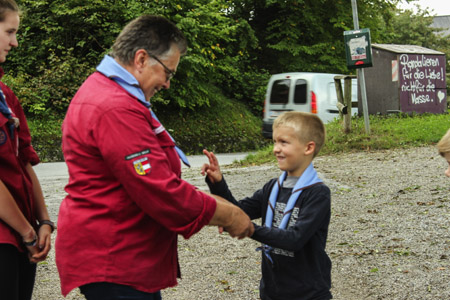 Unser Eröffnungslager fand dieses Jahr schon besonders früh statt. Am Freitag der ersten Schulwoche trafen wir uns im Heim, um in unserem Hof unsere Zelte und Jurten aufzustellen. Während die älteren Stufen das Lager aufbauten, fand zeitgleich am Mönchsberg die Überstellung von den Bibern zu den Wichtel und Wölflingen statt. 3 Biber stellten sich dem schwierigen Weg aus dem Biberbau in den Dschungel und wurden in die WiWö-Meute aufgenommen.
