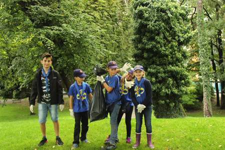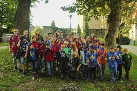 Da an diesem Wochenende der World Cleanup Day stattfand, machten wir uns mit Handschuhen und Müllsäcken bewaffnet auf den Weg um Mülln, den Mönchsberg und die Altstadt ein wenig sauberer zu machen. Da alle motiviert bei der Aktion dabei waren konnte jede Gruppe bereits nach einer Stunde einen schweren und bis an den Rand gefüllten Müllsack vorzeigen. Am Abend sangen wir gemeinsam und bereiteten uns auf die Messe vor, da wir am nächsten Tag unseren 60ten Geburtstag feierten. Unsere Jubiläumsfeier begann mit einer Messe in der Kirche und ging mit einem großen Festbankett im Bräustübl weiter. Danach gingen alle Kinder und einige Eltern auf den Mönchsberg, um nach einem kurzen Spiel eine Schnitzeljagd zu bestreiten, welche der Rätselmeister für sie vorbereitet hatte. Nachdem alle Gruppen die Schnitzeljagd erfolgreich bestritten hatten, mussten sie dem Rätselmeister beweisen, dass sie genug Wissen über das Müllner Halstuch gesammelt hatten, um eine Belohnung aus der Schatztruhe zu erhalten. Am Nachmittag ging es mit unserem Tag der offenen Tür weiter, der sehr erfolgreich war und kulinarisch bestens unterstützt wurde. Beendet haben wir den Tag mit einem großen Lagerfeuer.