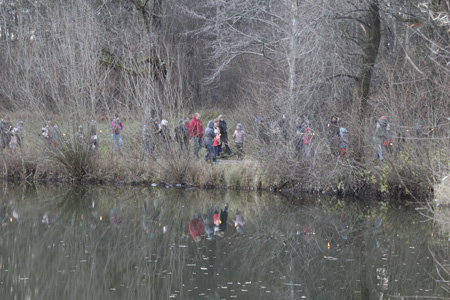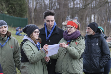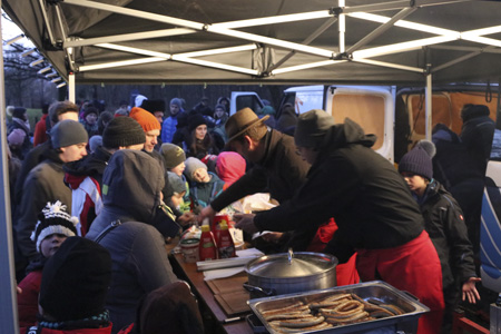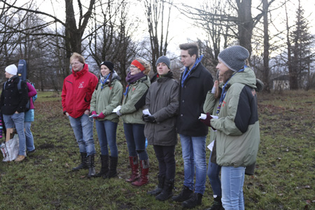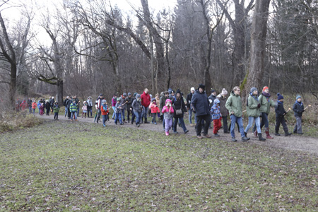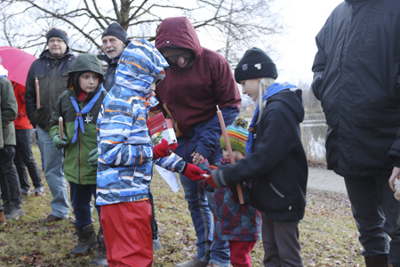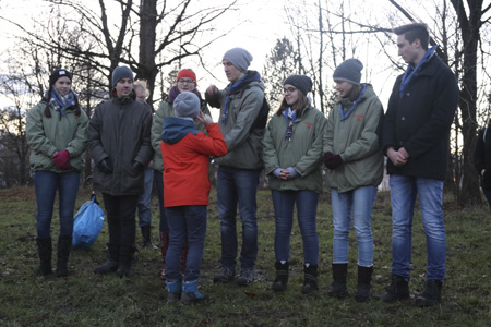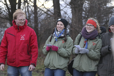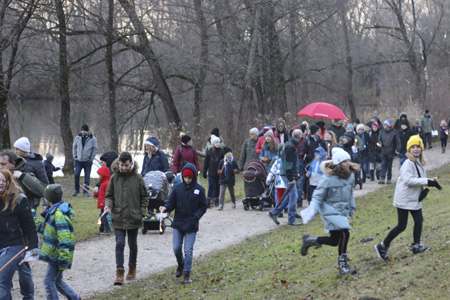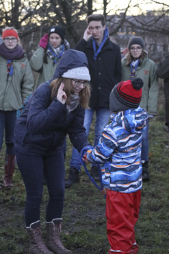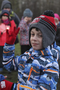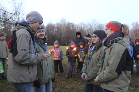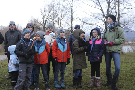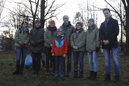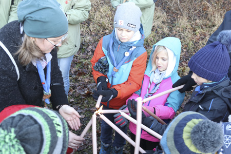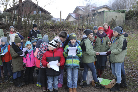 Wie jedes Jahr trafen sich die Müllner Pfadis zur traditionellen Adventwanderung, dieses Mal beim Salzachsee. Das Wetter half nicht gerade dabei, in Weihnachtsstimmung zu kommen, anfangs Nieselregen und dann starker Wind, doch wir ließen uns nicht beirren und machten uns auf den Weg. Spätestens bei der ersten Station, bei welcher die Biber die Fackeln entzündeten, kam schließlich Weihnachtsstimmung auf. Wir blieben immer wieder stehen, um Geschichten zu lauschen, Bastelwerke zu bestaunen und Lieder zu singen. Der Anlass wurde außerdem genutzt, um sowohl ein Biberhalstuch, als auch ein WiWö - Spezialabzeichen zu verleihen und um die neuen Leiterinnen der WiWö in den Dschungel aufzunehmen. Man kann es nicht leugnen, schon nach kurzem Fußweg begann der Magen zu knurren und dementsprechend enthusiastisch wurden die Bosna am Ende des Rundwegs verschlugen, Kürbissuppe gelöffelt und der Punsch genippt. Und so trennten wir uns vor Weihnachten, allen ein schönes Fest und einen Guten Rutsch wünschend und voller Vorfreude auf ein spannendes Jahr 2020 bei den Müllner Pfadfindern.