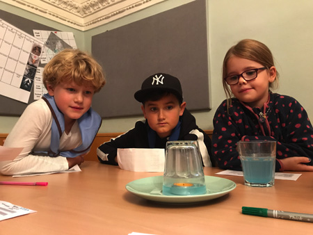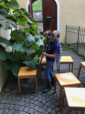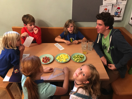 Letzteres war gar nicht so einfach in der Heimstunde letzten Mittwoch. Die WiWö haben sich getraut ganz viele neue Dinge auszuprobieren und zu erfahren. Was passiert, wenn man ein Glas über eine Kerze stülpt, die mit Wasser umgeben ist? Das Wasser wird auf magische Weise in das Glas hineingesaugt. Das war nur der Anfang, denn die Kinder schrieben und malten mit links, versuchten mit Blindenstock – einem Besenstiel – blind durch einen Parcours zu finden, und probierten tatsächlich auch exotische Lebensmittel aus. Nicht nur Avocados, sondern auch Mangos (die schmeckten natürlich allen), Maracuja-Orangen-Saft und Feigen probierten die Kinder aus. Und das Highlight – wie lange braucht man denn eigentlich, um ein Zuckerl in seinem Mund zergehen zu lassen …?