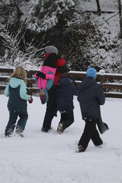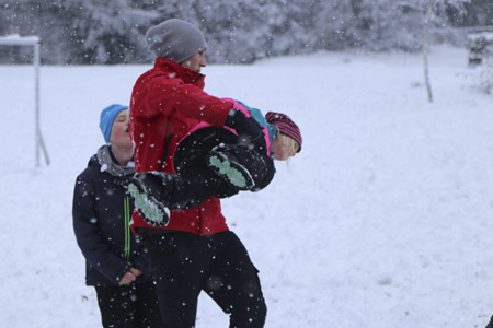 Zum Abschluss wurden wir sogar noch mit jeder Menge Schnee beglückt was eine ausgelassene Schneeballschlacht, Riesenschneekugeln und viele Schneeengel zur Folge hatte.