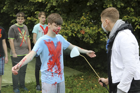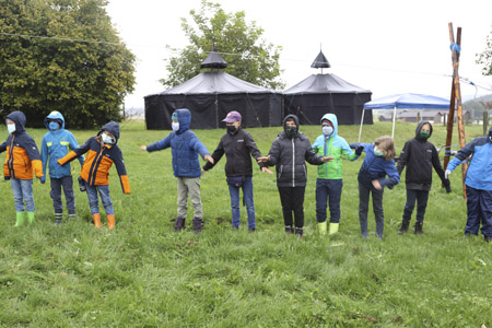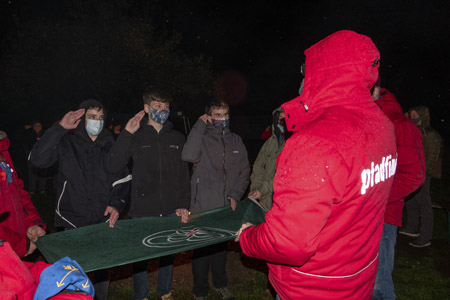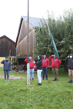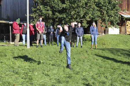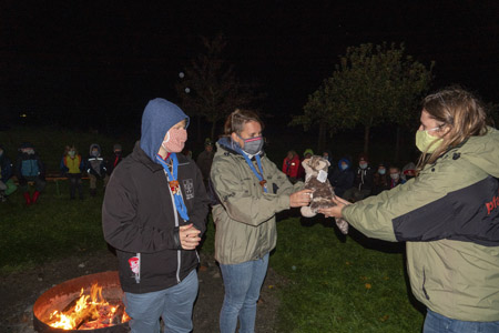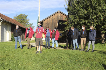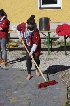 Bei kaltem und nassen Wetter und mit Mundschutz starteten wir in unser diesjähriges Überstellung- & Eröffnungslager. Schon bald verabschiedeten die WiWö 7 Kindern und einer Leiterin zu den GuSp, freuten sich aber auch über einen Biber, der mit Balus Hilfe gut in der neuen Stufe ankam. Während die neuen CaEx eine knifflige Schnitzeljagd meisterten, wartete der Rest schon gespannt auf die RaRo - Überstellung. Zwar fand diese wesentlich früher statt als normal, kalt, nass und vor allem schmutzig wurde es aber trotzdem. Nach einer gründlichen Tiefenreinigung sowie Desinfizierung der Innen- und Außenflächen, waren auch die Letzen in ihrer neuern Stufe angekommen. Das restliche Lager wurde für Stufenprogramm und ein großes Lagerfeuer genutzt.