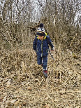 Von den beiden Leiterinnen war geplant zu einem Biberbau zu wandern. Doch kurz vorm Ausflug erfuhren wir, dass ein junger Osterhase in Fürstenbrunn den Inhalt seines Korbes verloren hatte.
