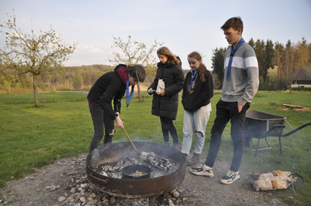 Im Rahmen unseres Lagerfeuers durften wir dieses Lager auch noch die Verleihung eines Halstuches in unserem Kreis feiern. Anschließend wurden die CaEx dann mit Snacks bepackt in die Jurte entlassen, um in der Nacht gemeinsam über ihr Feuer zu wachen.