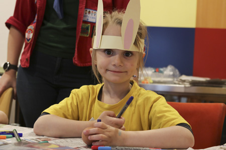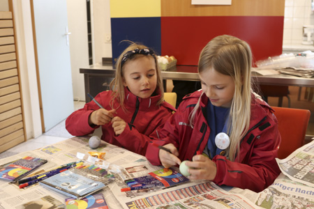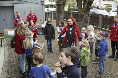 Nachdem am Freitagnachmittag noch die letzten Stationen startklar gemacht worden sind, hoppelten auch schon die ersten Kinder bei den Türen herein. Alle waren gespannt und motiviert wieder mehr Kinder aus anderen Stufen kennenzulernen und gemeinsam einen ganzen Nachmittag die verschiedensten Osterstationen zu durchlaufen. Von Bastelstationen, wie Eierfärben, Eierbecher basteln und Hasenohren basteln, über Schokohasen-Boccia, Sackhüpfen, einen trickreichen Hindernisparcours (kleiner Tipp: passt beim nächsten Mal auf, dass euch die Ventilatoren das Schokoei, nicht vom Löffel wehen ????) bis hin zu einer großen Ostereiersuche mit über 80 Eiern, die im und um den Landesverband, verteilt auf drei Stockwerken im ganzen Haus und auch im Garten versteckt waren, war für jeden was dabei!