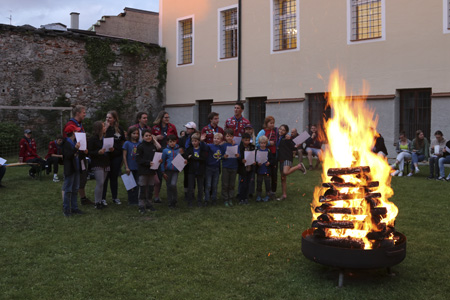 Von allen Aktionen unserer Gruppe ist das Schlusslagerfeuer vom Programm her wohl die gemütlichste. Man vertieft sich in Gespräche, sieht alte Gesichter wieder und schwelgt in den Erinnerungen des bald endende Pfadfinderjahr, während man auf den Beginn des letzten gemeinsamen Lagerfeuers wartet.