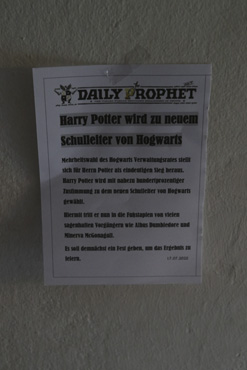 In der Nacht konnten wir den Zeitumkehrer dann zurückbekommen. Am nächsten Tag gab es Unterreicht von Prof. Trewlawny, Zaubertränke von Prof. Snape und Prof. McGonagall hat uns den Walzer beigebracht und wir ihr etwas modernere Tänze. Mit all diesen Kenntnissen konnten wir Harry mit dem Elderstab helfen wieder alles in Ordnung zu bringen. Nach einem vorzüglichen Festmahl am Mittwoch haben wir uns verabschiedet und konnten uns wieder den üblichen Lageraktivität widmen.
