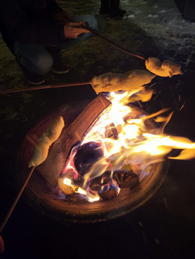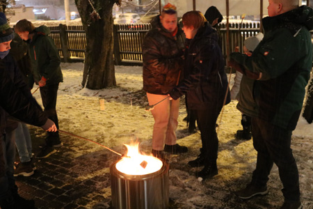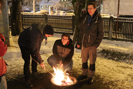 Unten am Lagerfeuer konnte man sich dann aufwärmen und leckeres Steckelbrot grillen. Natürlich durften Leckere Weihnachtskekse auch nicht fehlen. Für alle die etwas mehr Hunger hatten gab es aber auch noch weihnachtliche Bosna.