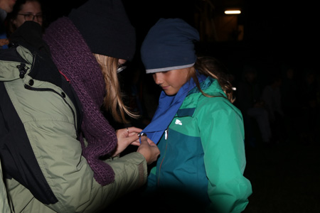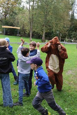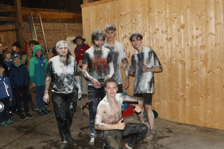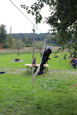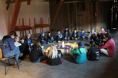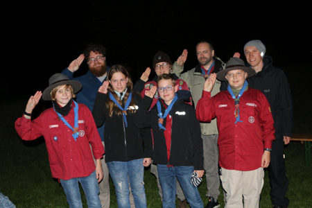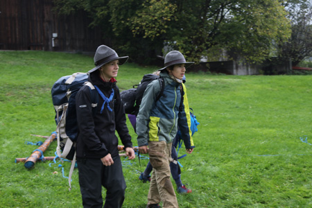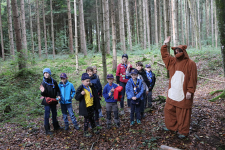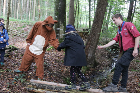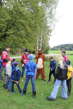 Aufgeregt und voller Vorfreude ging es für alle Kinder und LeiterInnen am Samstag früh morgens auf die Reise zum Lipplgut. Dort angekommen trafen wir auf alle fleißigen RaRo und LeiterInnen, die schon viele Überstellungen aufgebaut und Vorbereitungen getroffen hatten. So ging es auch gleich los. Die zu überstellenden WiWö wurden noch verabschiedet und mussten anschließend in einer waghalsigen Überquerung in der Höhe der Tenne über eine Slackline den Dschungel verlassen. Mit einem Flying Fox ging es danach zu den GuSp, die sich schon sehr freuten. Weiter ging es mit den Bibern, die ihren Weg zu den WiWö mithilfe Balu dem Bären gut meisterten. Nachdem das Wetter leider nicht wirklich mitspielte, mussten die GuSp ihre Zelte in der Tenne aufbauen und anschließend raustragen und die WiWö ihre Kennenlernspiele drinnen spielen. Wen man lange nicht zu sehen bekam waren CaEx und RaRo. Was die wohl im Schilde führen? Die RaRo bauten die Überstellung auf und die CaEx … . Als der Abend schon näher rückte, packten sich alle dick ein und das Feuer begann seine Flammen gen Himmel zu strecken. Feierlich wurden Halstücher und diverse Abzeichen verliehen. Und plötzlich ging die Tennentür auf und eine Moderatorin trat heraus um die zu überstellenden CaEx zum heutigen Spieleabend einzuladen. So mussten sie in einem Spiel von 1, 2 oder 3 die richtigen Antworten herausfinden. Leider gelang das nicht so gut, weswegen sie nachher ein wenig dreckiger ihren Weg in die RaRo-Bar antreten durften. Die Nacht war noch nicht zu Ende, denn die CaEx mussten noch ihren Weg in einer Nachtaktion bestreiten.