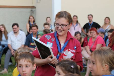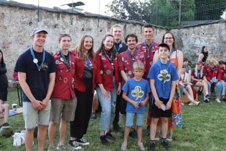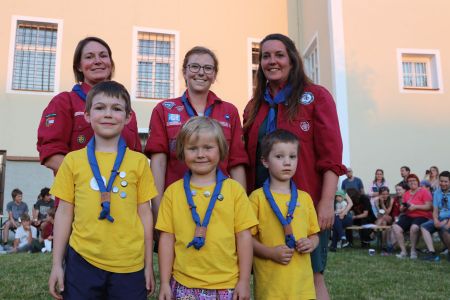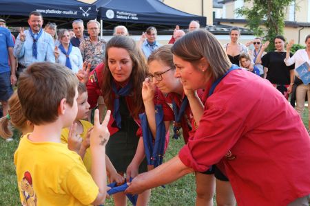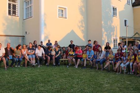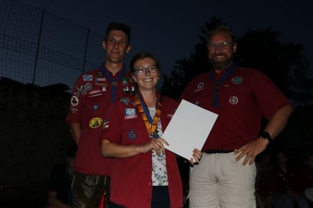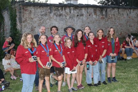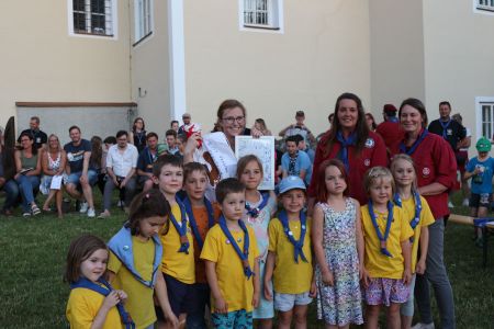 Wie kann man ein tolles Jahr mit vielen Heimstunden, Aktionen und Lagern am besten abschließen? Richtig, mit einem großen Schlusslagerfeuer an einem wunderschönen Sommertag in unserem Hof in Mülln. Beim gemütlichen beisammen sein, wurde das Jahr in all seinen Facetten beleuchtet und diskutiert. Bestens versorgt mit Essen und Getränken von unserem Support-Team, verging die Zeit bis zum Lagerfeuer wie im Flug. Ein großes Lagerfeuer mit vielen Verleihungen war der krönende Abschluss eines tollen Jahres und steigerte die Vorfreude auf die anstehenden Sommerlager. Quer durch alle Stufen gab es unzählige Verleihungen. Drei unserer Leiterinnen wurden mit den Ehrenzeichen der PPÖ ausgezeichnet. Alex erhielt das Bronzene Ehreneichen für 10 Jahre Leitertätigkeit, July und Pia erhielten das Silberne für 15 Jahre. Herzliche Gratulation.