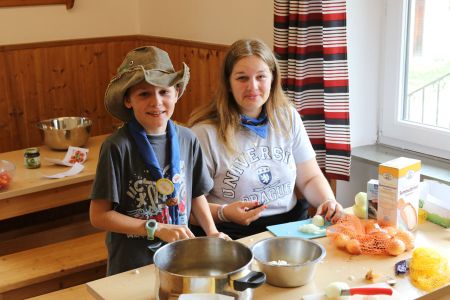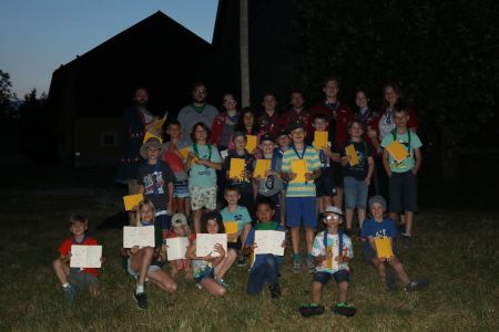 Der Donnerstag verlief etwas chaotisch, aber die Kinder genossen den Tag und endeten mit einer köstlichen Pizza. Am Nachmittag hatten sie Freizeit, die die meisten für die Spezialabzeichen nutzten. Die neuen Meisterköche zauberten ein köstliches 3-Gänge-Menü, bestehend aus Bruschetta, Kartoffeln und Fleischbällchen sowie einem leckeren Schichtdessert. Die verirrten Hänsel und Gretel wanderten schließlich zum Lippelgut und lernten von den WiWö Bodenzeichen, um sich künftig nicht mehr zu verirren. Ein ganz besonderer Abend folgte, denn die WiWö konnten ihn unter einem funkelnden Sternenhimmel verbringen, zumindest bis einige Regenwolken aufzogen.