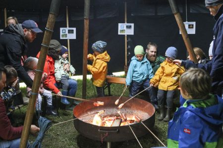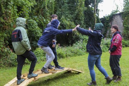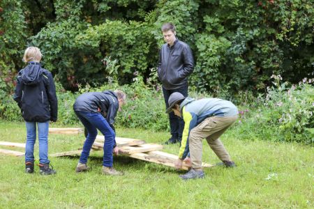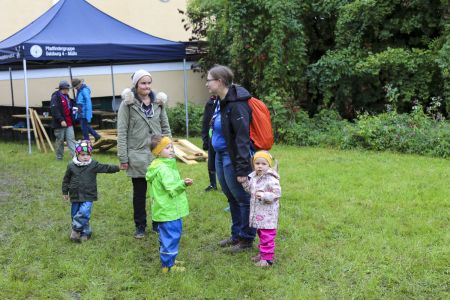 Alle die sich in den Regen trauten konnten neben Pendelgolfen auch im Teamwork eine sich selbsthaltende „Da Vinci-Brücke“ aufstellen (oder zumindest darüber gehen). Außerdem gab es eine große Schatzsuche, die durch den ganzen Hof unseres Heims verteilt war. Natürlich war auch für die Kulinarik durch unser großartiges Verpflegungsteam gesorgt. Selbst Steckerlbrot und Knacker über dem Feuer grillen, war für viele unserer jungen Besucher ein Highlight.