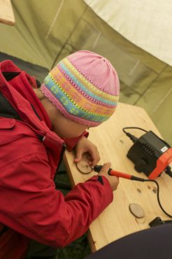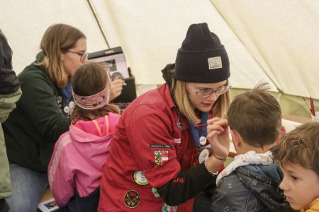 Trotz des nicht so idealen Wetters durften wir viele neue und interessierte Gesichter begrüßen und ihnen zeigen, was wir Pfadfinder so machen. Beim abwechslungsreichen Programm war für jeden und jede etwas dabei. Während die einen kreative Button gestaltet haben, bastelten andere Stressbälle oder verzierten Holzscheiben mit einem Brenngerät. Durch gekonntes Pinselschwingen unserer Leiterinnen verwandelten sich viele Kinder in Superheld*innen und verschiedenste Tiere. Für alle Pfadiexperten gab es ein Schauzelt, in das sich ein paar falsche Gegenstände geschlichen haben, die es zu entdecken gab.