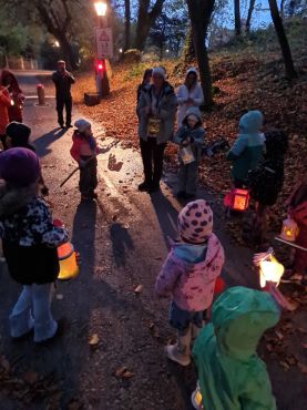 Am 10.11.2024 trafen wir uns somit mit allen Biberkindern und deren Familien, um gemeinsam das Martinsfest zu begehen. Das Wetter war uns zwar nicht besonders gewogen, gut ausgerüstet konnten wir allerding trotzdem auf den Mönchsberg aufbrechen. Dort führten wir mit unseren Laternen, unter schützenden Bäumen, unseren eigens einstudierten Lichterkinder Tanz auf. Nachdem die letzten Töne verklungen waren, brachen wir wieder auf und machten es uns alle zusammen noch mit Tee und Lisas mitgebrachten Martinskipferl im Heim gemütlich.