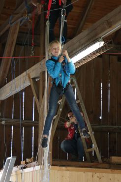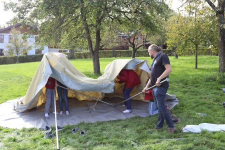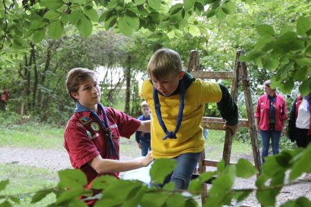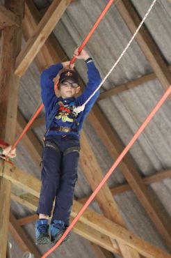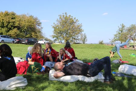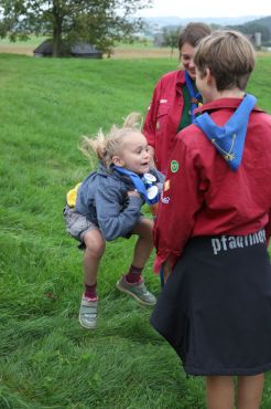 Die Vorfreude ist jedes Jahr eine besondere. Wie wird es in der neuen Stufe? Werde ich mich gut einfinden? Diese und ähnliche Gedanken schwirren durch die Köpfe der Kinder und Jugendlichen, die auf diesem Lager in die nächste Altersstufe wechseln werden. Für die zu überstellenden WiWö dauert diese Ungewissheit jedoch nicht lange. Kurz nach Ankunft am Lipplgut, wo bereits einige fleißige RaRo und Leiter*innen auf die aufgeregte Meute wartet, geht es auch schon los. 8 Kinder machen sich nun auf den Weg die WiWö Stufe zu verlassen und ihres Zeichen GuSp zu werden. Nach einem hohen Aufstieg, einer laaaaaangen Slackline-Brücke und einer rasanten Flying Fox ist es geschafft – sie sind in der GuSp-Stufe angekommen. Dort angekommen ging es sogleich daran die Zelte für die Nacht aufzubauen – zum allerersten Mal.