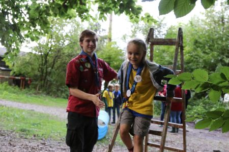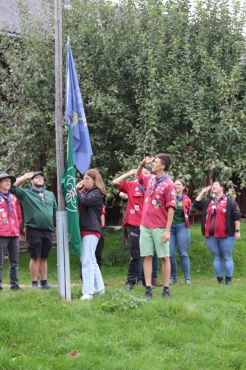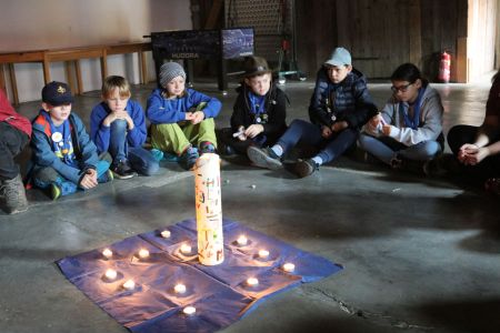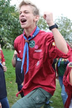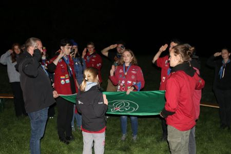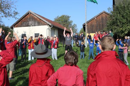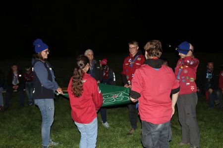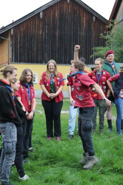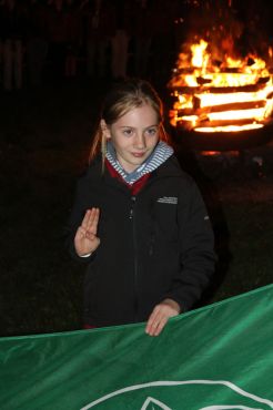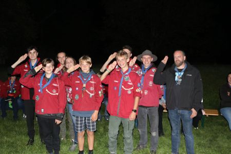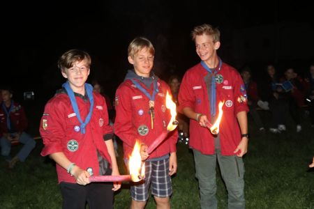 Danach kehrt erst mal Ruhe ein. Der Lagertag nimmt seinen gemächlichen Lauf, WiWö und GuSp gewöhnen sich an die neuen Aufgaben und als es langsam Abend wird liegt der Geruch von Lagerfeuer in der Luft. Aber kein gewöhnliches Lagerfeuer – NEIN! Denn dieses Mal sind auch Eltern vor Ort. Der Grund ist ein ganz besonderer. Denn neben Versprechen und Spezialabzeichen gibt es bei den GuSp dieses Jahr etwas, das es bei uns schon sehr lange nicht mehr gab. Phillip, Jakob und Tommy haben sich ihre Buschmannsriehmen redlich verdient!